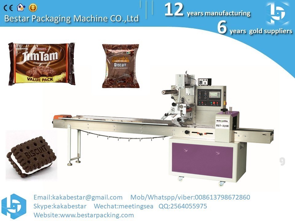 Máquina de embalaje de flujo horizontal para galletas, el modelo incluye de alta calidad y alta eficacia y BST-250, BST-320, BST-400, BST-450, BST-600, BST-700, BST-800 ect.