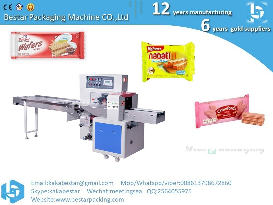 Máquina de embalaje de flujo horizontal para obleas, el modelo incluye de alta calidad y alta eficacia y BST-250, BST-320, BST-400, BST-450, BST-600, BST-700, BST-800 ect.